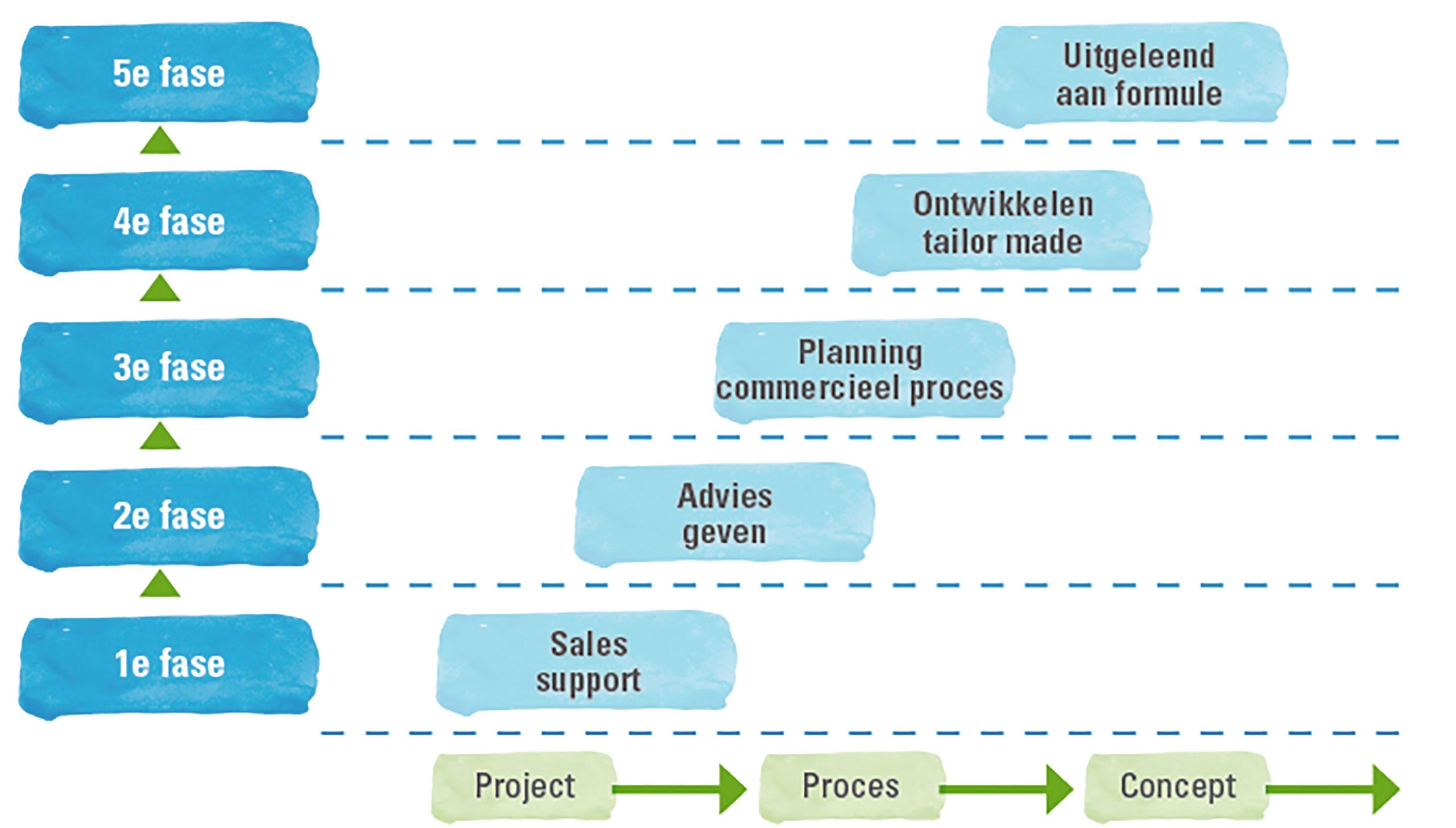 – In fase 3 is trade marketing verantwoordelijk voor het gehele commerciële proces, maar nog wel in een ondersteunende rol.